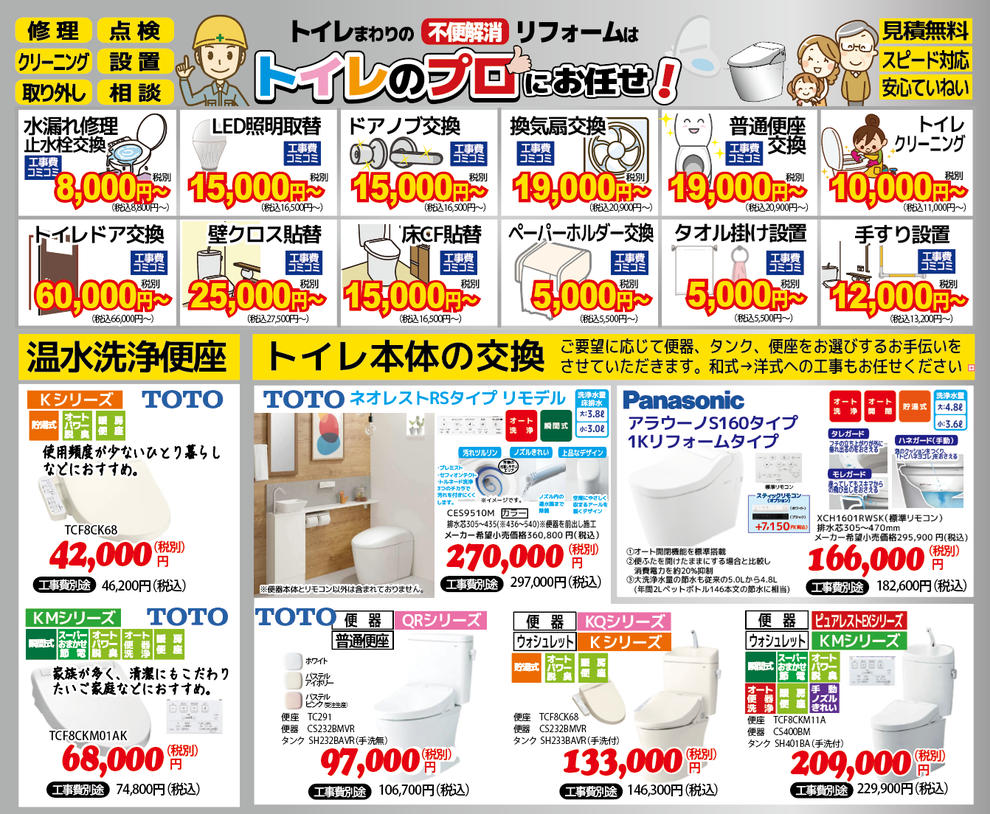 トイレのウォシュレット工事、レンジフード、ガス台から、キッチン、浴室…お家のフルリフォームまで。
